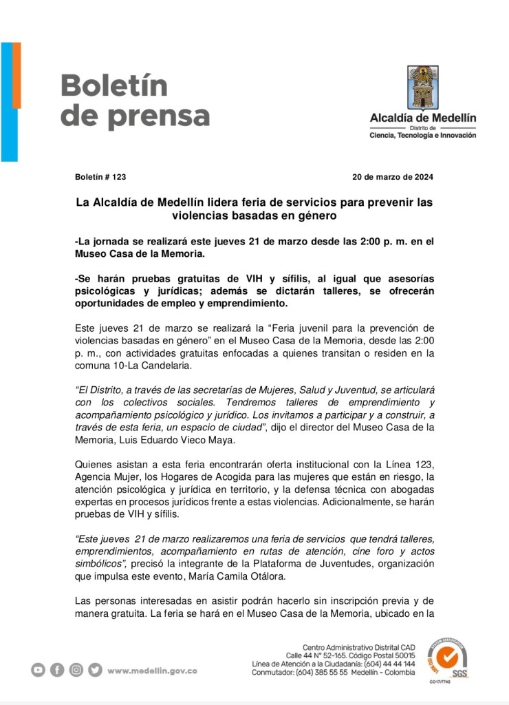 «Vale la Pena es más que una campaña, es un recordatorio de que podemos hacer la diferencia con pequeños gestos. La soledad y el aislamiento son amenazas silenciosas, pero una sonrisa, una conversación o un simple ‘¿cómo estás?’ pueden salvar vidas», afirmó Ricardo Jaramillo, secretario de la Juventud de Medellín.